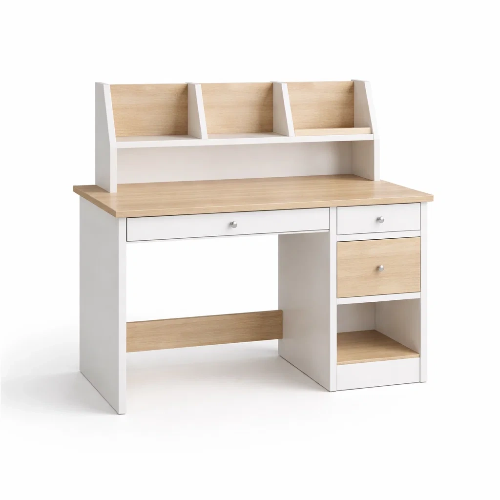 Bureau en bois MDF avec étagère et tiroirs blanc et naturel