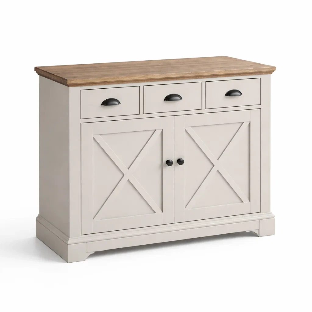 Buffet en bois avec placage de chêne, tiroirs et portes