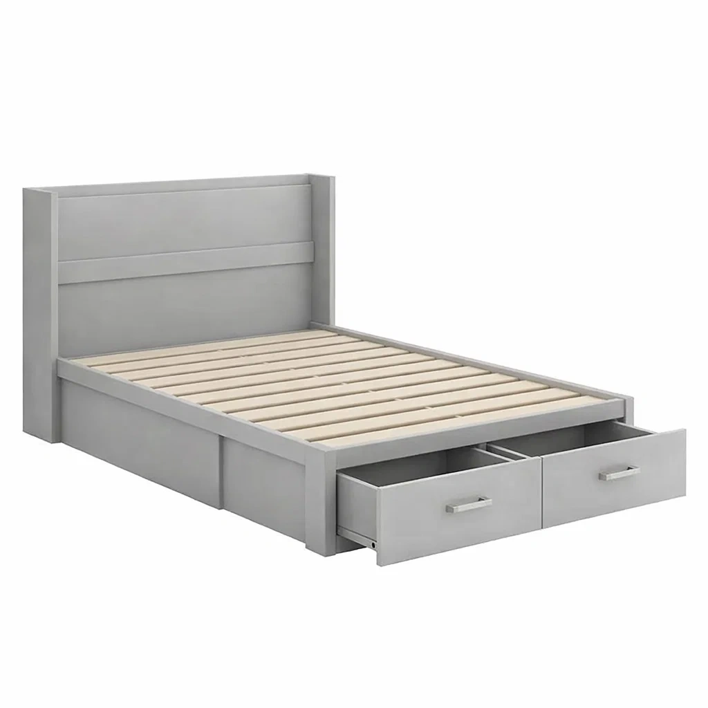Lit avec rangement en bois massif avec tiroirs gris